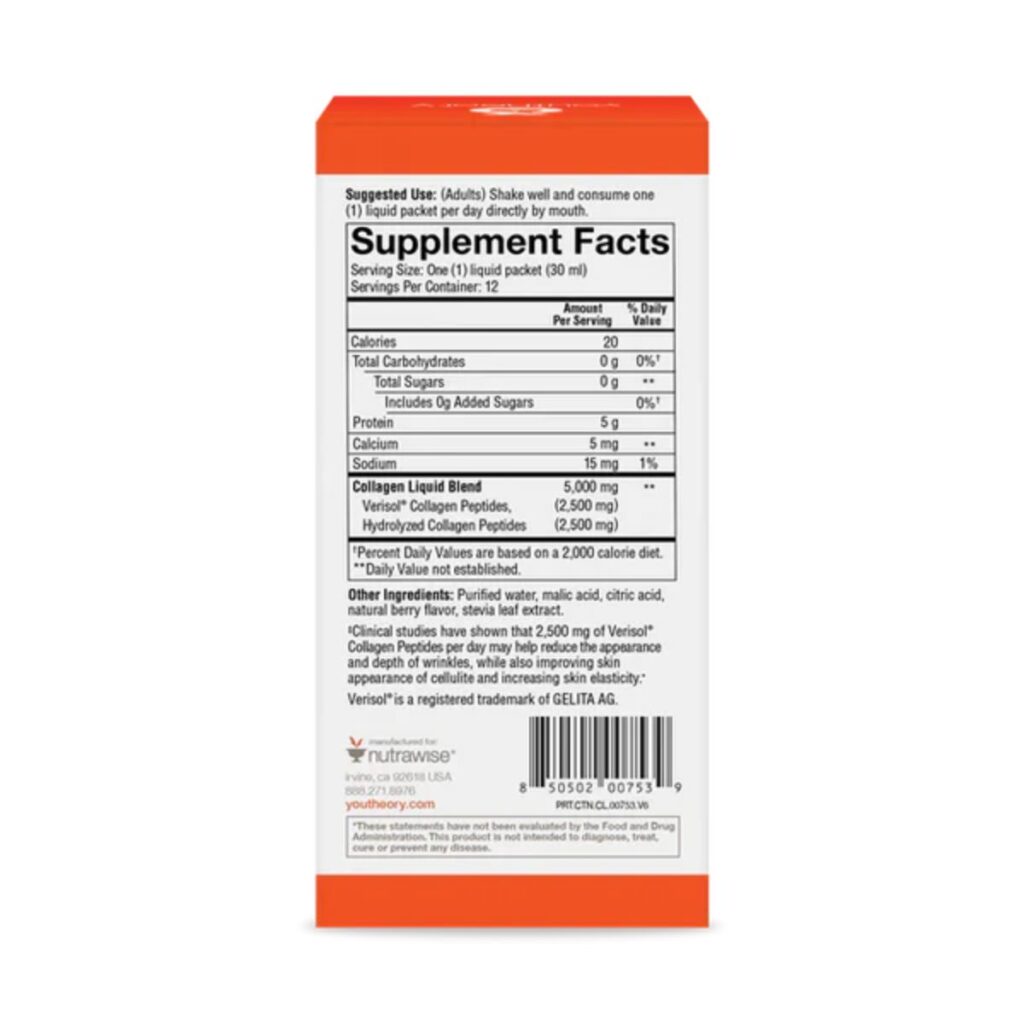 Youtheory Collagen on the Go Sugar-Free Liquid 5,000mg Collagen per Serving, Natural Berry Flavor (30ml)